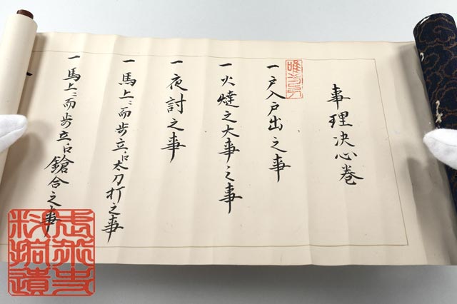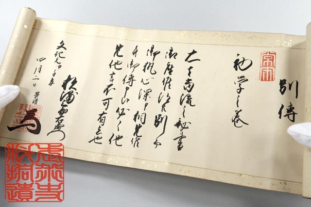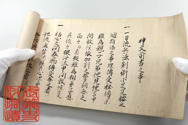 こゝに掲げた『初学之巻』は、九鬼式部少輔隆郷侯に伝授された『理盡得心巻』に別伝として付属したもので、通常とは異なる伝授かと思われます。
