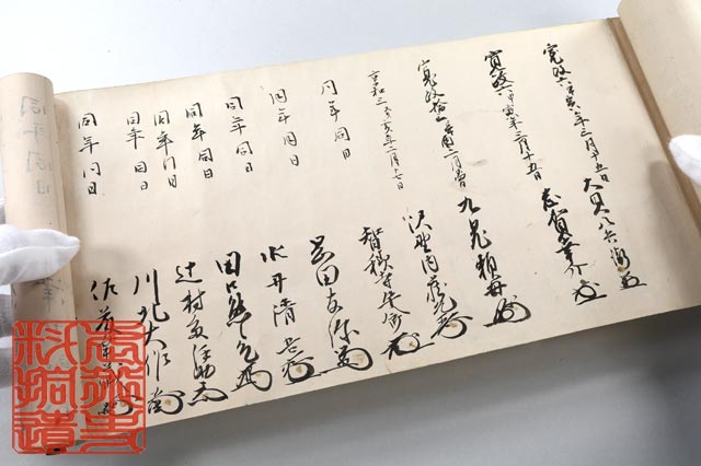 この神文には、丹波綾部藩唯心一刀流師範田口氏に入門した家中の士たちが名を列ねています。
