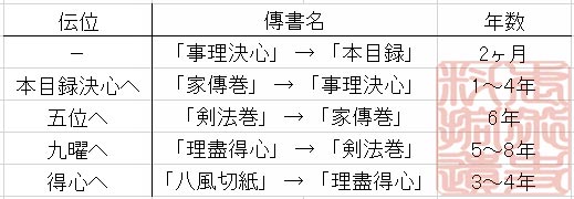 一、『剣法巻』→『家傳巻』の年数は、田口重信(他藩士であるため出府時のみ素水と接触)の情報しかないため、実際はもっと短い年数だったと考えられます。