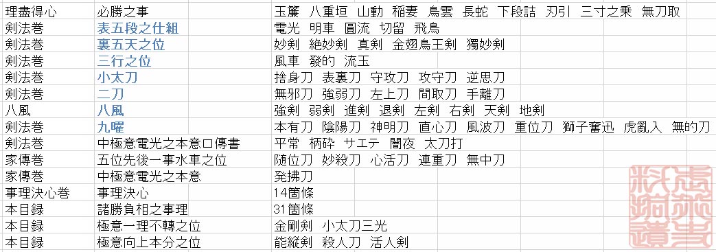 『剣法巻』は、「九曜」の位と云い、「得心」から修行することおよそ五~八年で伝授されます。これは「中極意」に相当し、「中格」と云う扱いでした。これは流儀の基礎伝書であったと考えられます。